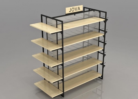 Custom 4 side gondola shelving - with wooden shelves metal slatwall