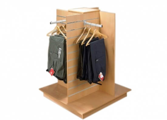 This 4 side slatwall gondola racks: slatwall panels ( veneer finished or baking finish ), slatwall accessories ( wall hook or slat shelves) , laminated deck, logo.