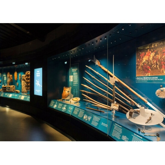 This glass museum showcase is wall display unit ideas for history museum. It's made by MDF and tempered glass with lights and display fixtures. We offers standard laminate and veneer finishes this museum wall showcase .