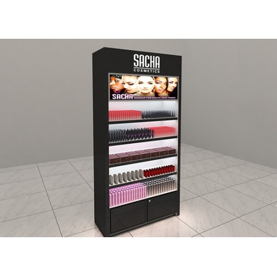 Wall makeup store shelves, Retail commercial makeup display