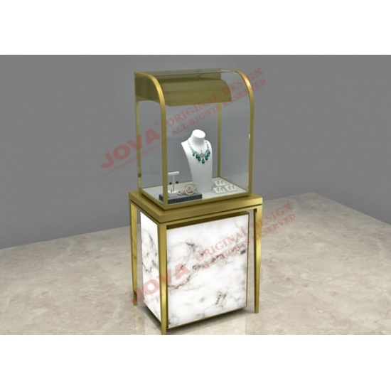 This boutique jewelry display are stainless steel frame ( color including gold, silver, bronze, white, black, etc), with a sunshine stone bottom storage ( lockable ). The bottom storage was made by sunshine stone, inside having LED lights. View the New jewelry showcases 3D design: