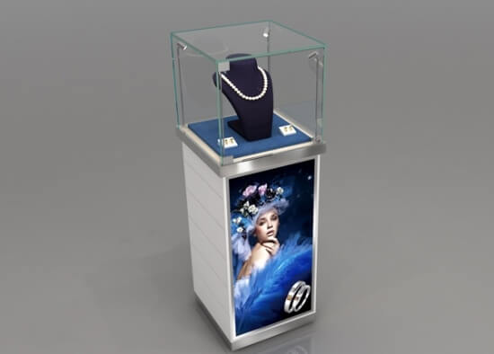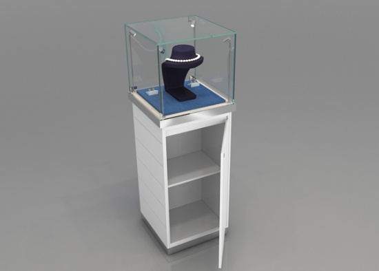 The wooden glass jewelry pedestal are pre-assembled and are made with MDF and tempered glass. We offers standard laminate and veneer finishes this pedestal display stand. Standard pedestal display stand: tempered glass,lamp, clear glass doors, locking hinged door (security lock), wooden storage cabinet, light box, dust resistant, electrical cord with switch.