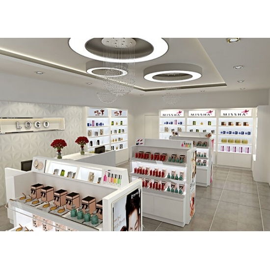 We can make customer's logo on the surface of the high quality cosmetic store display;